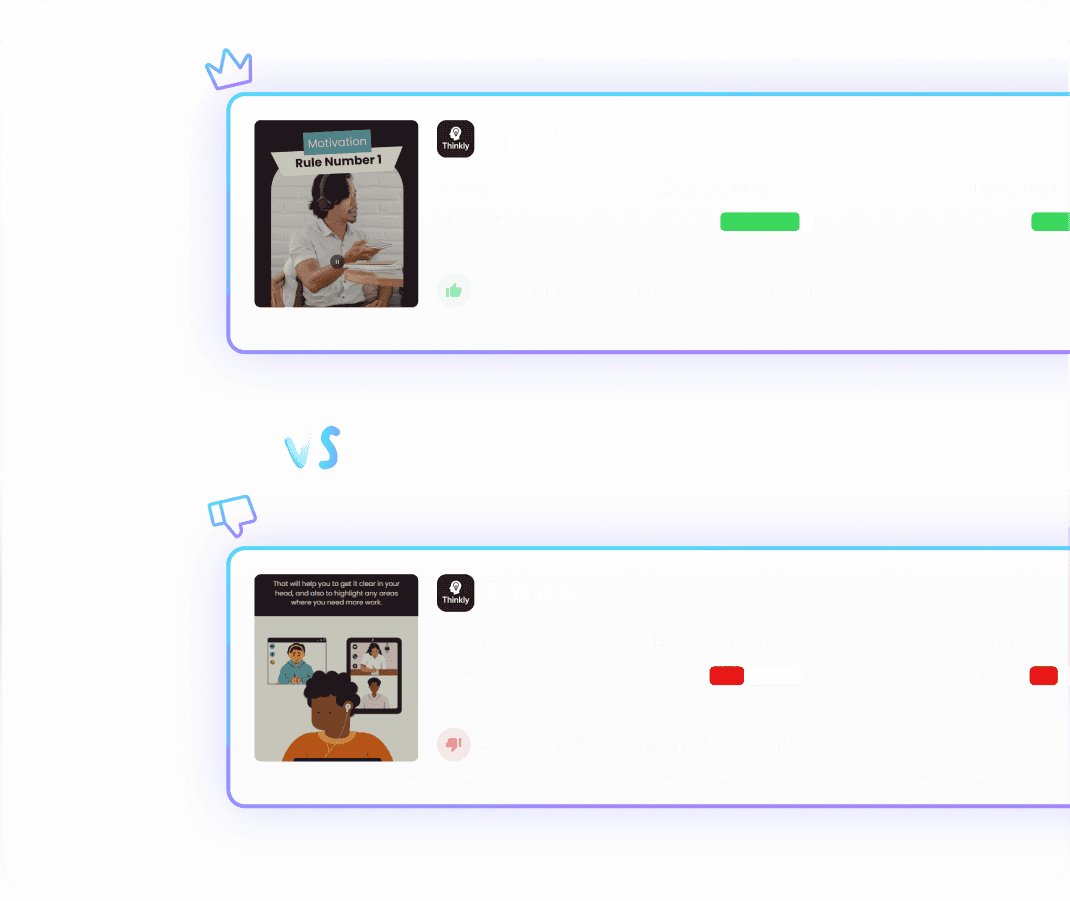 See your best and worst performing posts side by side, compare engagement, reach, and audience data to understand what drives success and what needs improvement.