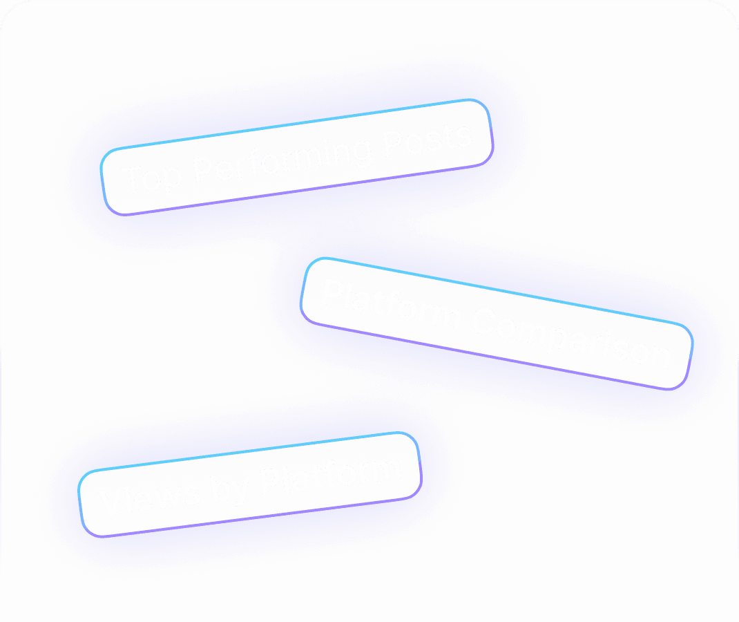 All your essential metrics in one place, impressions, views, likes, shares, and comments. Select a specific platform to zoom into performance trends.