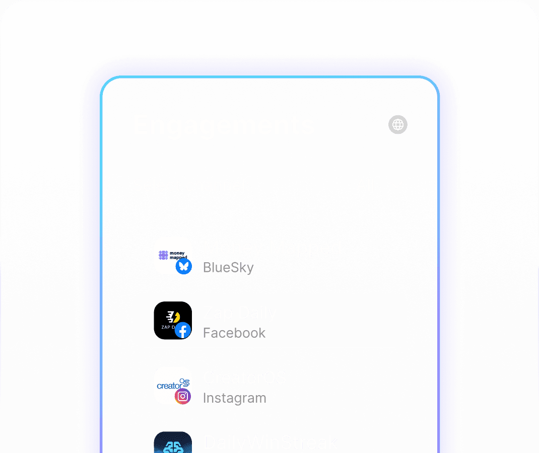 Comments and DMs from every platform in one spot. Never miss a reply that matters.